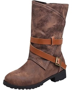 Женские винтажные ковбойские сапоги с середины голени, удобные повседневные ботильоны, противоскользящие западные ковбойские ботильоны на платформе, Brown