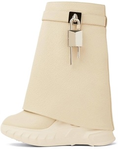 Женские ботильоны с пряжкой на щиколотке, складные сапоги, платформенные туфли на танкетке, с круглым носком, до середины голени, байкерские ботинки, модные и удобные короткие сапоги для женщин, Beige