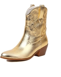 Женские вышитые ковбойские ботинки в западном стиле на толстом каблуке, ботильоны на каждый день, для свиданий и вечеринок, Gold