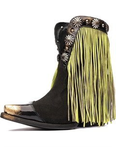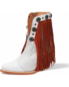 Женские ковбойские сапоги с бахромой, винтажные ковбойские ботильоны с заклепками, деревенские ковбойские сапоги в западном стиле, заостренные ботильоны на устойчивом каблуке, короткие ковбойские сапо