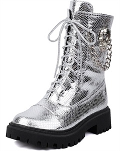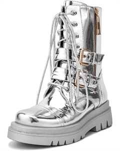 Платформенные ботильоны на щиколотку готические с круглым носком, боевые ботинки серебристого металлического цвета, с зеркальной отделкой, шнуровкой и боковой молнией, байкерские с массивным каблуком