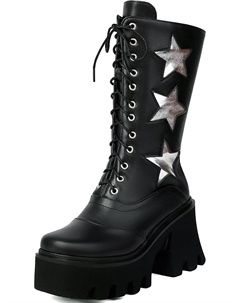 Женские платформенные готические ботинки с звездой, средняя голень, массивный каблук, округлый носок, боевые ботинки до щиколотки, толстая подошва, боковая молния, ботильоны на голень, Black