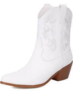 Женские вышитые ковбойские ботинки в западном стиле на толстом каблуке, ботильоны на каждый день, для свиданий и вечеринок, White