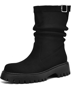 Женские байкерские ботинки с мягкой посадкой, круглый носок, платформа, толстый каблук, удобные ботильоны на молнии, осенние замшевые ботинки, повседневные сапоги до икры, Black