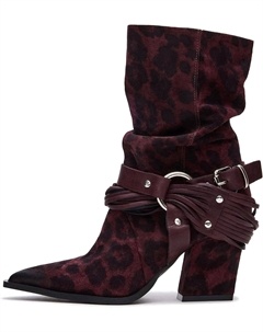 Ковбойские сапоги для женщин, свободные ковбойские ботильоны на щиколотку, с толстым каблуком, мото-ботинки, ботильоны с пряжкой, вестерн-ботинки, короткие стильные ковбойские сапоги, Red Leopard