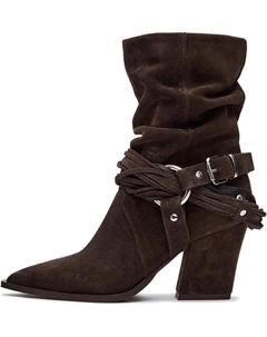 Ковбойские сапоги для женщин, свободные ковбойские ботильоны на щиколотку, с толстым каблуком, мото-ботинки, ботильоны с пряжкой, вестерн-ботинки, короткие стильные ковбойские сапоги, Brown