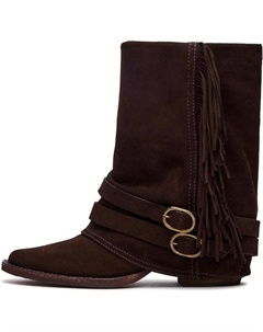 Ковбойские сапоги с бахромой для женщин, сапожки-ковбойки, заостренный носок, закрытые каблуки-блоки, ботильоны с пряжкой на щиколотке, короткие западные байкерские сапоги, Brown