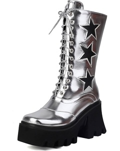Женские платформенные готические ботинки с звездой, средняя голень, массивный каблук, округлый носок, боевые ботинки до щиколотки, толстая подошва, боковая молния, ботильоны на голень, Silver