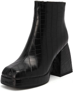 Женские ботильоны в клетку с искусственной змеиной кожей, массивным каблуком и боковой молнией, модные зимние ботинки, Black