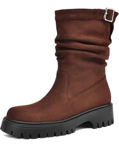 Женские байкерские ботинки с мягкой посадкой, круглый носок, платформа, толстый каблук, удобные ботильоны на молнии, осенние замшевые ботинки, повседневные сапоги до икры, Brown