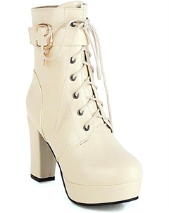Лакированные модные женские ботильоны с круглым носом, массивным каблуком, на молнии и шнуровке, высоким каблуком 10 см и платформой 3 см, большие размеры T998-42, Beige