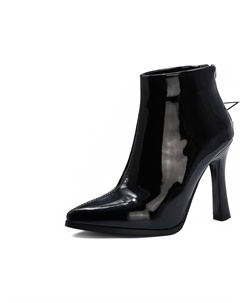 Лаковые модные ботильоны на высоком каблуке с застежкой-молнией, острый носок, каблук-блок 10,5 см, удобные для ходьбы, для женщин, большие размеры 35-48 tt10122, Black