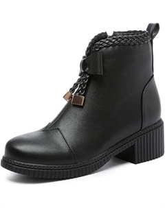 Женские ботильоны с круглым носком, молнией, средним каблуком и массивным каблуком, с ручной отделкой, повседневные короткие сапожки для женщин z168-21, Black 2