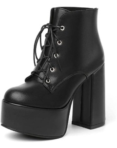 Женские ботильоны с круглым носком, шнуровкой, высокой и устойчивой колодкой, платформой, каблук 5 см, ручная работа, короткий голенище, модель zc22-661, Black
