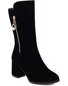 Ботильоны для женщин больших размеров с молнией, на высоком каблуке 7 см, удобные для ходьбы, модные округлый носок, на устойчивом каблуке из нубуковой кожи t257-72, Black