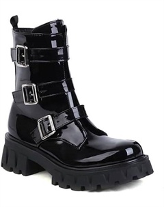 Женские ботильоны из лакированной кожи с круглым носком, молнией и шнуровкой, средней высоты каблук, плоская подошва, ручная работа, короткий голенище для женщин z38-, Black