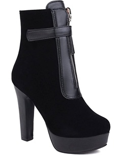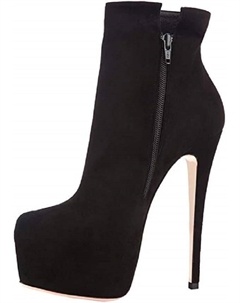 Модные женские ботильоны из нубука с круглым носком, массивным каблуком, молнией, высокие каблуки с платформой 12 см и голенищем 3,5 см, большой размер t33-282, Black