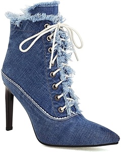 Женские вечерние ботильоны Th6-2042 из денима с высоким каблуком 9,5 см, заостренным носком, шпилькой, молнией и шнуровкой, для больших размеров
