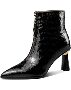 Женские ботильоны из лакированной кожи с круглым носком, на высоком каблуке и застежкой-молнией, с плоской подошвой, коротким голенищем ручной работы для женщин z2080-51, Black