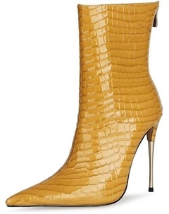 Микрофибровые сексуальные ботильоны на щиколотку с кружевным носком, молнией, шпилькой и высоким каблуком, ручной работы, полусапожки для женщин большого размера zt846s, Yellow