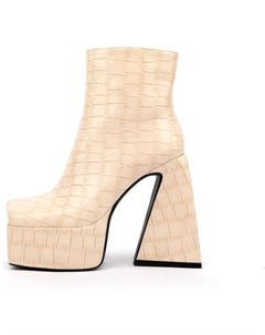 Синтетические модные ботильоны на щиколотку с квадратным носком, молнией и массивным каблуком, ручной работы, полуботинки для женщин большого размера zfcx01s