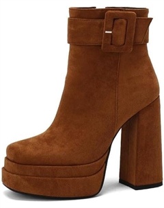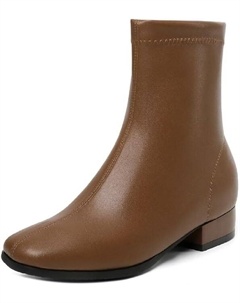 Женские замшевые ботильоны с узором на носке, молнией, квадратным каблуком, ручной работы, короткий голенищами для женщин z8807s, Brown