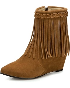 Женские ботильоны с застежкой-молнией Nubuckleather, модные с заостренным носком, танкетка, высокий каблук с кисточкой, каблук 6,5 см, удобные для ходьбы, больших размеров t1502, Yellow