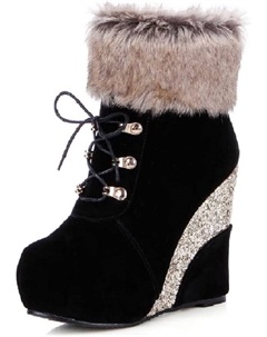 Женские ботильоны Zd-1081 на танкетке с круглым носком, молнией, высоком каблуке, ручной работы, с коротким голенищем, Black