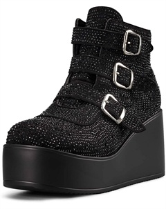 Женские ботильоны на платформе с массивным каблуком - круглый носок, молния, танкетка, высокий каблук, рэйв-застежка с пряжкой, толстая подошва, готические ботиночки, Black Rhinestone