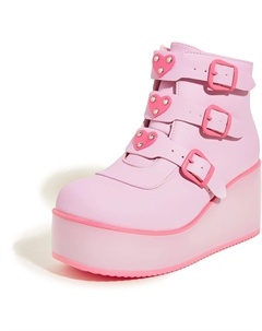 Женские ботильоны на платформе, с округлым носком, молнией, платформой-танкеткой, пряжкой в стиле рейв, толстой подошвой, готические ботильоны, Pink/Fuchsia