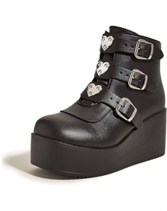 Женские ботильоны на платформе с массивным каблуком - круглый носок, молния, танкетка, высокий каблук, рэйв-застежка с пряжкой, толстая подошва, готические ботиночки, Black