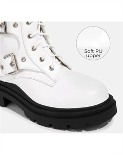 Женские боевые ботинки - Высокие ботинки на массивной платформе до середины голени, ботильоны с боковой молнией, пряжками, готический стиль, White