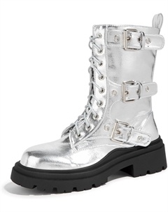 Женские боевые ботинки - Высокие ботинки на массивной платформе до середины голени, ботильоны с боковой молнией, пряжками, готический стиль, Silver