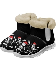 Зимние сапоги Art с отделкой фланелью для мужчин и женщин, унисекс, теплые домашние ботильоны на каждый день, уютные на молнии, Funny Skeleton Design Black