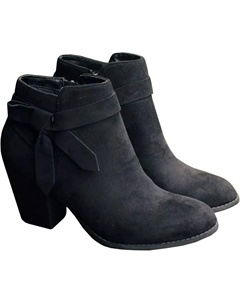 Женские ботильоны с массивным каблуком, на удобной подошве, с боковой молнией, из искусственной замши, повседневные западные ботинки, Black-1