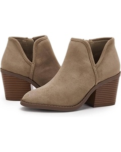 Женские ботильоны с массивным каблуком, на удобной подошве, с боковой молнией, из искусственной замши, повседневные западные ботинки, Khaki-1