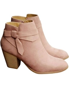 Женские ботильоны с массивным каблуком, на удобной подошве, с боковой молнией, из искусственной замши, повседневные западные ботинки, Pink-1