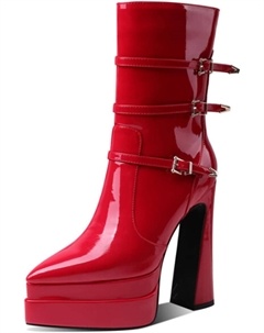 Женские модные ботильоны на высоком массивном каблуке с двойной платформой, из лакированной кожи, с заостренным носком, ремешком с пряжкой и боковой молнией для женщин, Red Patent