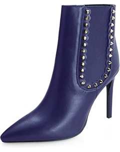 Женские модные ботильоны с острым носком, шпилькой, из искусственной кожи с заклепками, удобным высоким каблуком, боковой эластичной молнией и платьевым стилем, Blue Matte