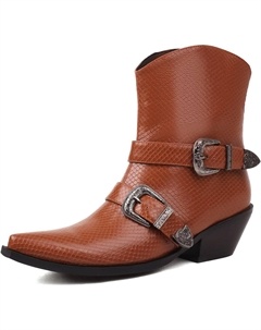 Женские модные западные ковбойские ботинки с тиснением под змеиную кожу, ремешком с металлической пряжкой, ботильоны на среднем массивном каблуке, ковбойские ботильоны для платьев, Brown