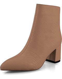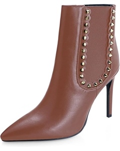 Женские модные ботильоны с острым носком, шпилькой, из искусственной кожи с заклепками, удобным высоким каблуком, боковой эластичной молнией и платьевым стилем, Brown Matte