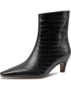 Женские модные ботильоны с заостренным носком, с тиснением под аллигатора, из кожи, с удобным низким каблуком-киссетом, Black Alligator