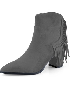 Женские элегантные ботильоны с низким массивным каблуком, заостренным носком, имитацией замши, бахромой, удобным блочным каблуком и боковой молнией для офиса, Grey