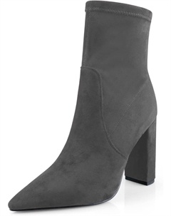 Женские элегантные ботильоны с высоким широким каблуком, заостренным носком, из искусственной замши, с удобным массивным каблуком и боковой молнией, для нарядного образа, Grey