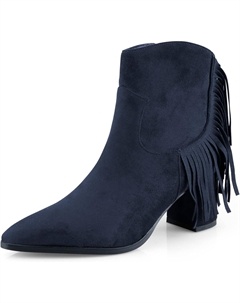 Женские элегантные ботильоны с низким массивным каблуком, заостренным носком, имитацией замши, бахромой, удобным блочным каблуком и боковой молнией для офиса, Navy