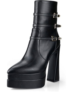 Женские модные ботильоны на высоком массивном каблуке с двойной платформой, из лакированной кожи, с заостренным носком, ремешком с пряжкой и боковой молнией для женщин, Black Matte