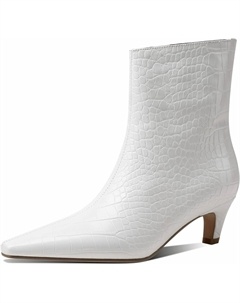 Женские модные ботильоны с заостренным носком, с тиснением под аллигатора, из кожи, с удобным низким каблуком-киссетом, White Alligator