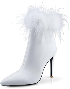 Женские ботильоны с острым носком, на шпильке, из искусственной кожи, с высоким каблуком и боковой молнией, для платья, White Fur