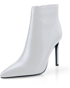 Женские ботильоны с острым носком, на шпильке, из искусственной кожи, с высоким каблуком и боковой молнией, для платья, White Matte