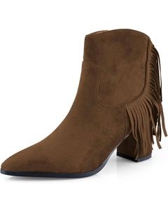 Женские элегантные ботильоны с низким массивным каблуком, заостренным носком, имитацией замши, бахромой, удобным блочным каблуком и боковой молнией для офиса, Brown